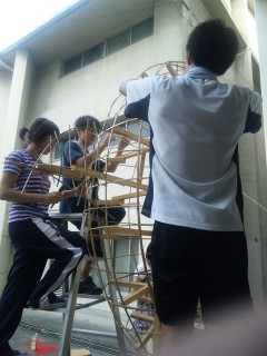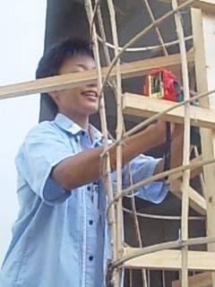 後夜のシンボル灯を製作しているところを覗いてました。